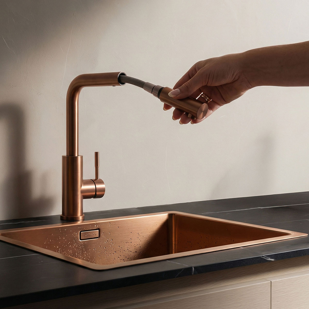 Vamos dar uma olhada nas tendências em torneiras de cozinha. Se há um elemento que realmente faz a transição de "objeto funcional" para "peça de destaque" este ano, é a torneira de cozinha. Enquanto os últimos anos foram dominados pelo cromo frio e pelo preto elegante, 2026 é todo sobre calor, materiais táteis e um toque mais humano.