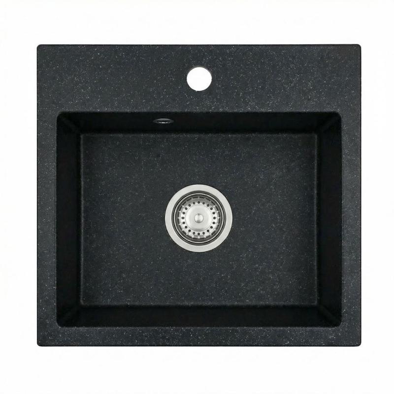 Graniteland Nera Granite Sink 45x42 cm Bluestone hard stone look Top mounted with Tap hole bank and Stainless Steel Plug 1208971432