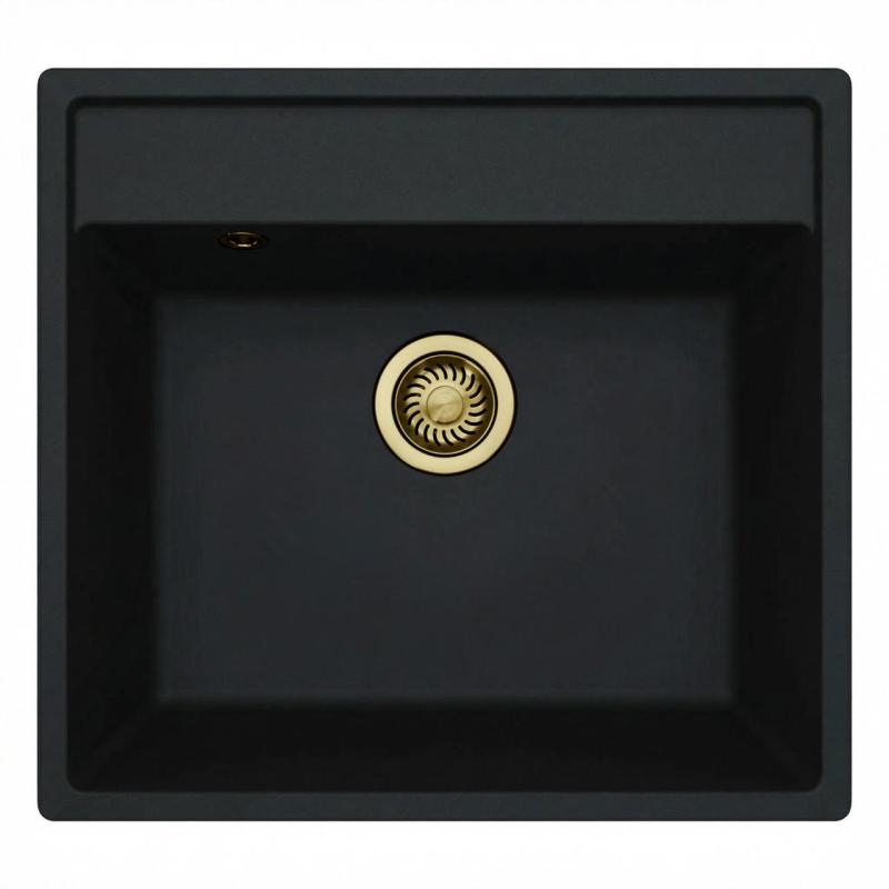 GraniteMy Bremen Granite Sink 53x50 cm Black - Surface Mount, Undermount and Flush Mount with Faucet Hole and Gold Plug 1208969969