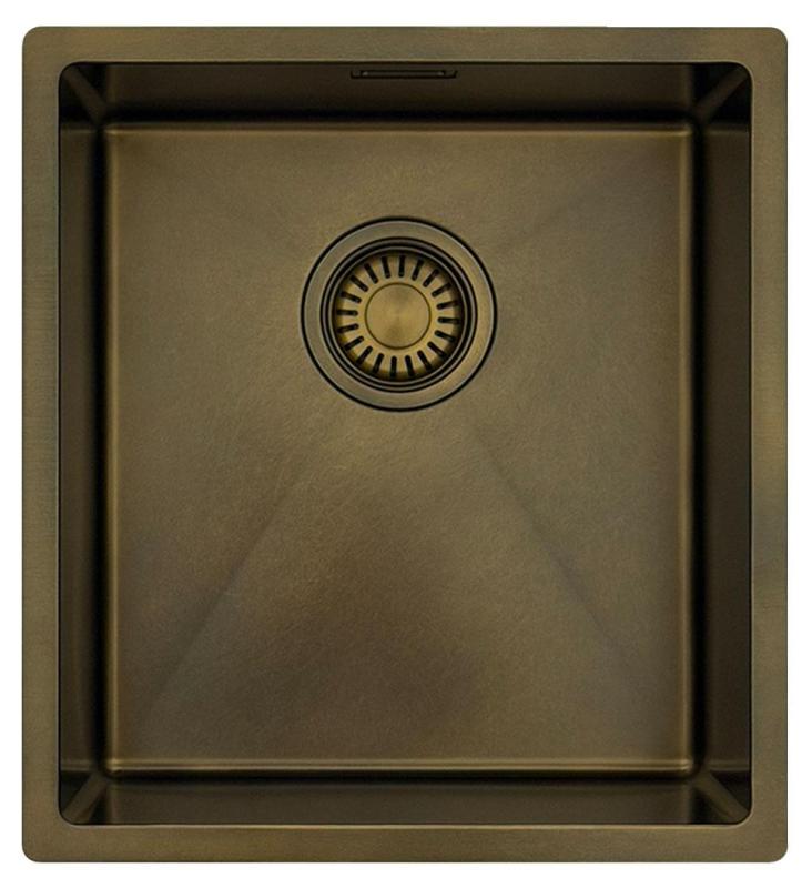 Pure.Sink Luxion PVD Antique Bronze pia 36x40 cm para instalação embutida, encastrada ou sobreposto com rack inferior PLX3640-64
