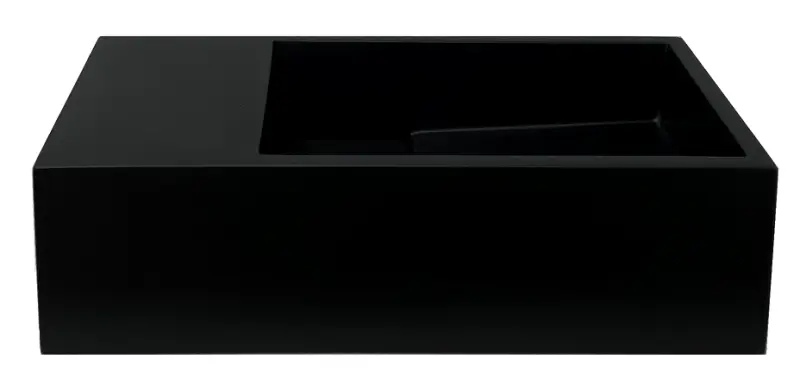 Solid-S Lavatório em solid surface preto mate, 36 cm (L) x 18 cm (P) x 10 cm (A), com tampa, modelo à esquerda, sem orifício para torneira, 1208954157