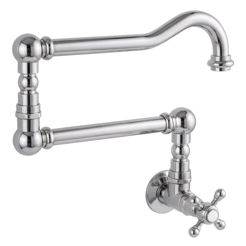 Torneira de parede embutida clássica PB com botão para água fria e bico giratório longo cromado 1208855712